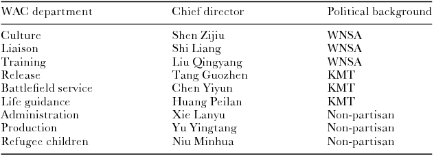 Table 1. The chief directors of WAC departments and their political backgrounds, 1938.Footnote 78
