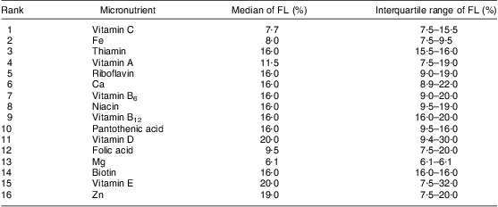 Table 4 Rank of vitamins and minerals added and their fortification levels according to FVFVM consumed. Pelotas, Brazil, 2012