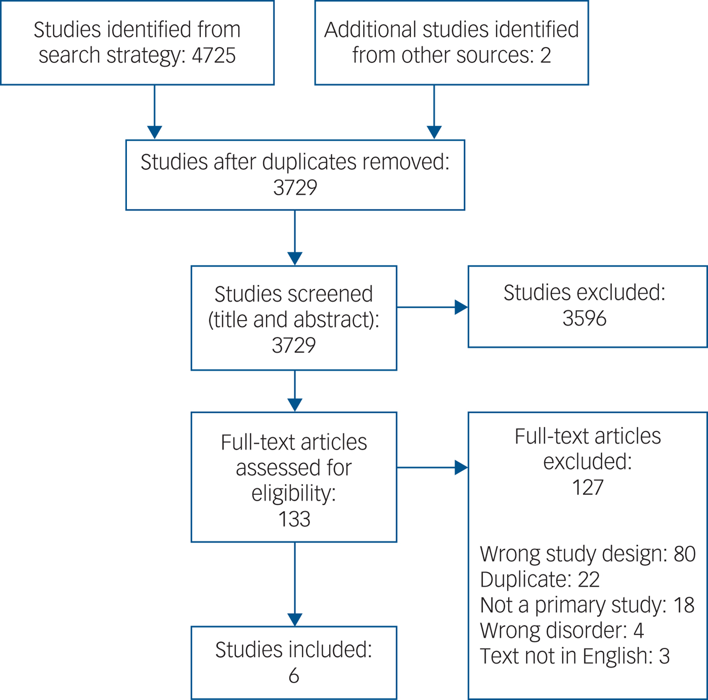 We assessed 4727 citations, of which six studies met inclusion criteria (Fig. 1). The included studies are summarised in Table 1.