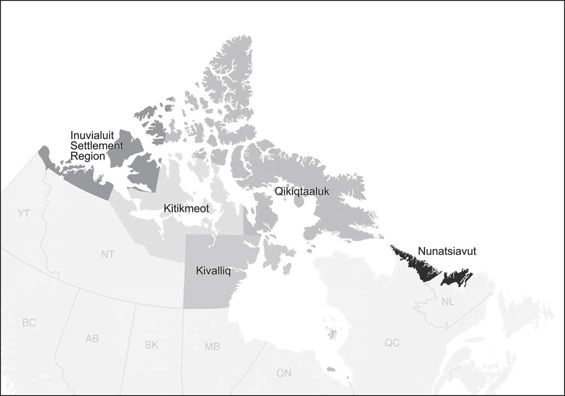 Fig. 1 Map of the participating Inuit regions* of the 2007–08 Inuit Health Survey. *Nunavut is comprised of the Kitikmeot, Kivalliq and Qikiqtaaluk regions
