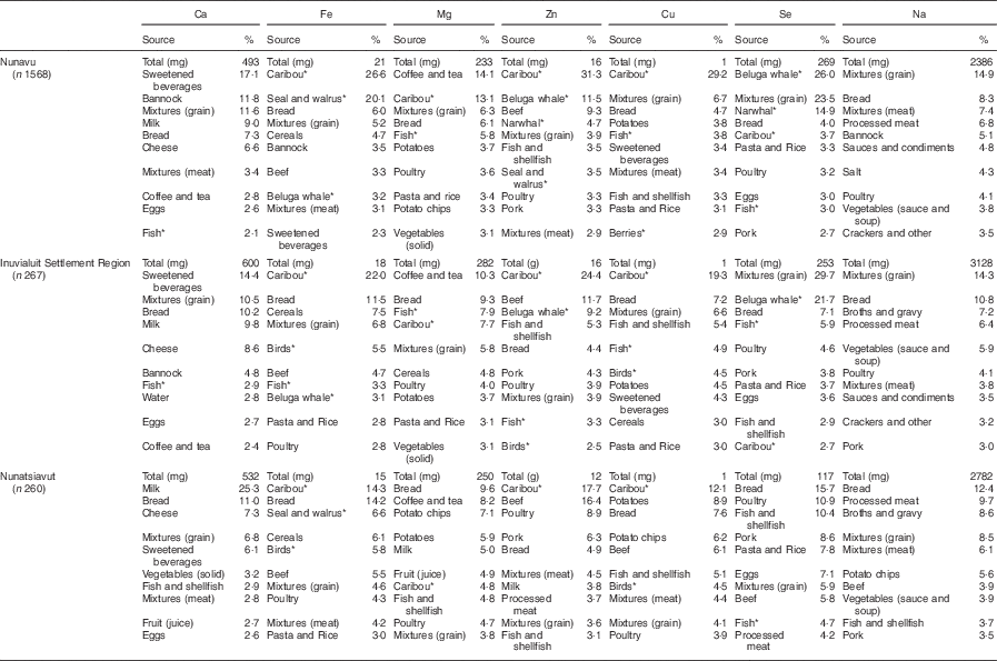 Table 6 Percentage contribution to mineral intakes from the top ten dietary sources among Inuit adults (n 2095), by region; Inuit Health Survey, 2007–2008