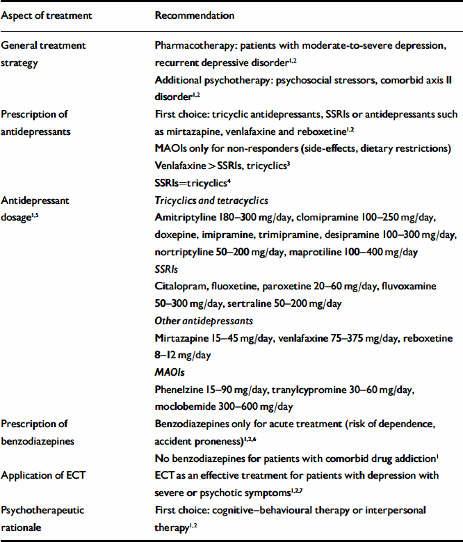 Table 2 Guideline recommendations for the treatment of depression in in-patients