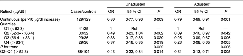 * To convert retinol in μg/dl to μmol/l, multiply by 0·0349.