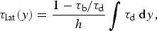 there τ ij are components of the deviatoric stress tensor, |τ xy| = τ lat, τ b is the basal shear traction, and τ d is the gravitational driving stress (MacAyeal, Reference MacAyeal1989, Reference MacAyeal1993). We use observed ice thickness h and ice-surface slope α (from Fretwell and others, Reference Fretwell2013) to calculate the gravitational driving stress τ d = ρ ighα, where ρ i is the density of ice and g is gravitational acceleration. We assume that when averaged along-flow over distances of order several ice-thicknesses, τ d and τ b covary across the flow such that