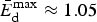 $1 \le E_{\rm d} \le E_{{\rm d}}^{{\rm max}} < 1.1$ with a mean along-flow value of