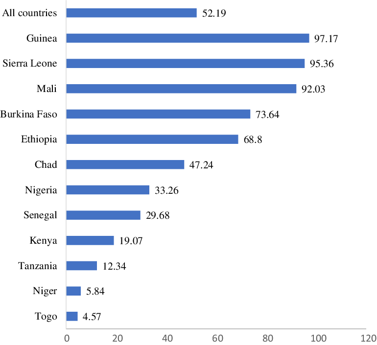 Figure 2. Prevalence (%) of girl-child marriage in twelve countries of sub-Saharan Africa.