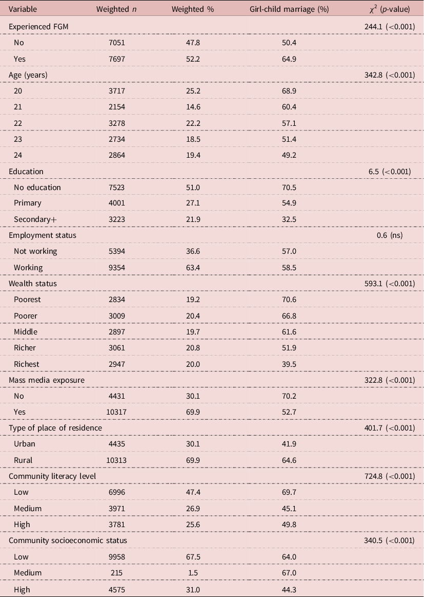 Table 2. Distribution of girl-child marriage among young women by FGM status and socio-demographic characteristics (N=14,748)