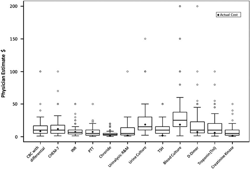 Figure 8 ED physician cost estimates of various laboratory tests.