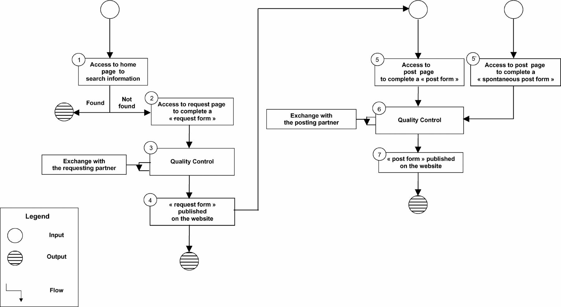 Web Site Access. Figure 1 shows how the Web site is used and how information is processed: The user searches the database for information on a promising health technology (Action 1). If no or insufficient information is retrieved, the user completes the standard request form on the request page (Action 2). The request form undergoes quality control (Action 3). The request form is published on the Web site (Action 4), and all EUnetHTA Partners are notified by email. Partners who can provide the information requested complete the standard posting form (Action 5). The posting form undergoes quality control (Action 6).The posting form is then published on the Web site (Action 7), and the user who requested the information is informed by email that a member has responded to the request. Any user can provide information spontaneously by completing the spontaneous posting form (Action 5’). All information exchanged is automatically stored in the database. All members are informed of entries by email alert.