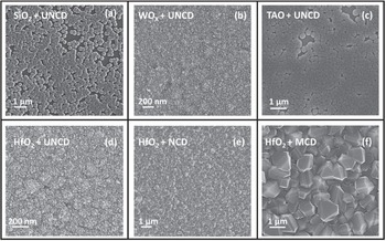 4. Discovery of basic materials/chemistry/physical processes to integrate dissimilar materials like high-dielectric constant (k) dielectrics and UNCD and MCD (e.g., UNCD or MCD/HfO2 [Reference Alcantar-Peña, Lee and Fuentes-Fernandez41]), ferroelectric/piezoelectric oxides/UNCD (e.g., PbZrxTi1-xO3/UNCD [Reference Sudarsan, Hiller, Kabius and Auciello42]; piezoelectric nitrides/UNCD (e.g., AlN/UNCD [Reference Zalazar, Gurman and Park43]), all enabling new generations of micro/nanoelectronic and microelectromechanical systems/nanoelectromechanical systems (MEMS/NEMS) devices, as described below.
