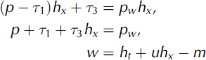 With ν ≪ 1, we havew ≈ w(x, t ), Ƭ ≈ |Ƭ 1| and uz þ wx ≈ 0, from which we obtain