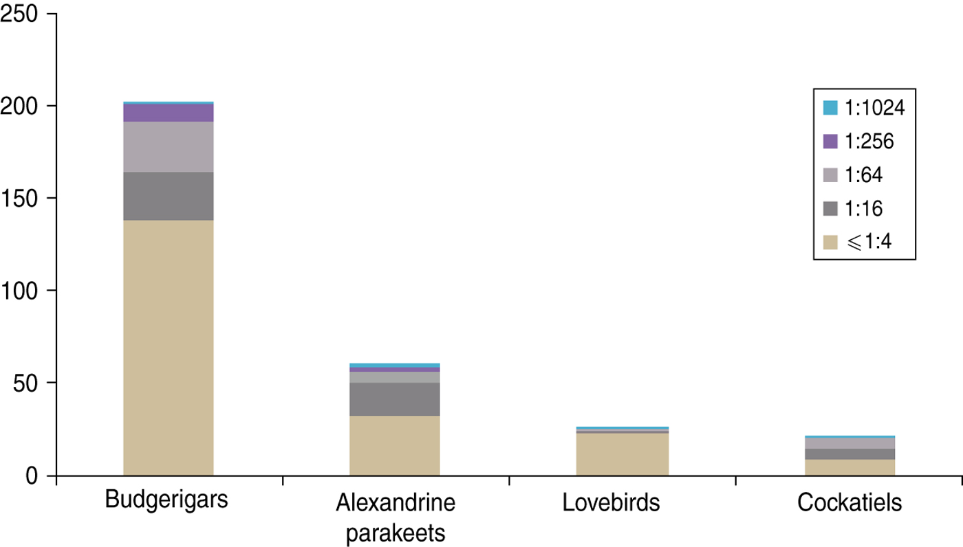 Fig. 1. [colour online]. The Chlamydia antibody titres in four species of parrots.