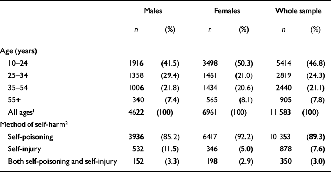 | Self-poisoning | 3936 | (85.2) | 6417 | (92.2) | 10 353 | (89.3) |