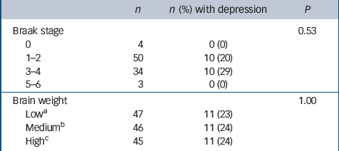 Table 3 Associations between Braak stage, brain weight and previous depression