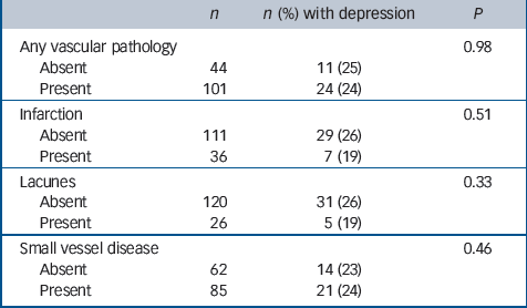 Table 4 Associations between gross vascular pathology and previous depression