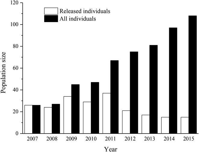 Figure 2. The population size of the reintroduced Crested Ibis between 2007 and 2015.