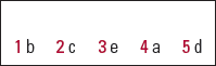 | 1 | b | 2 | c | 3 | e | 4 | a | 5 | d |