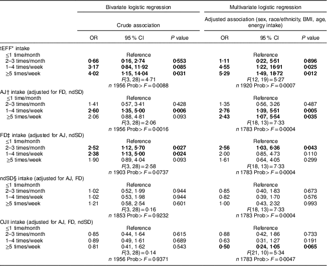 * tEFF (total excess free fructose) combines average intake frequency for AJ+FD+ndSD.