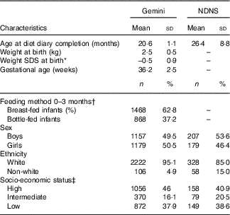 Table 1 Sample characteristics in the Gemini twin study (n 2336) and National Diet and Nutrition Survey (NDNS) (n 386) (Mean values and standard deviations; numbers and percentages)