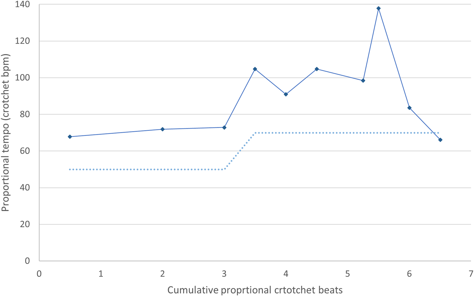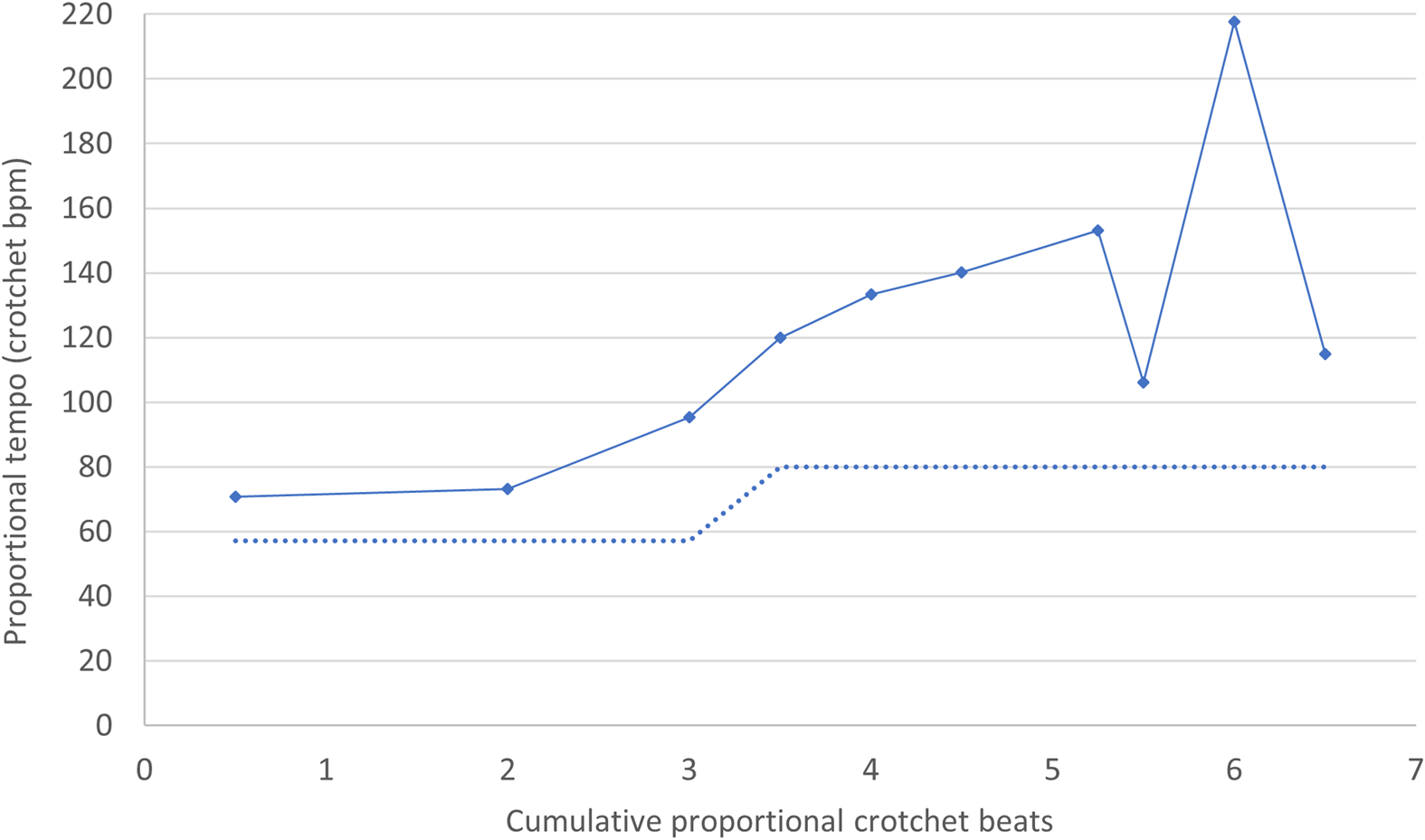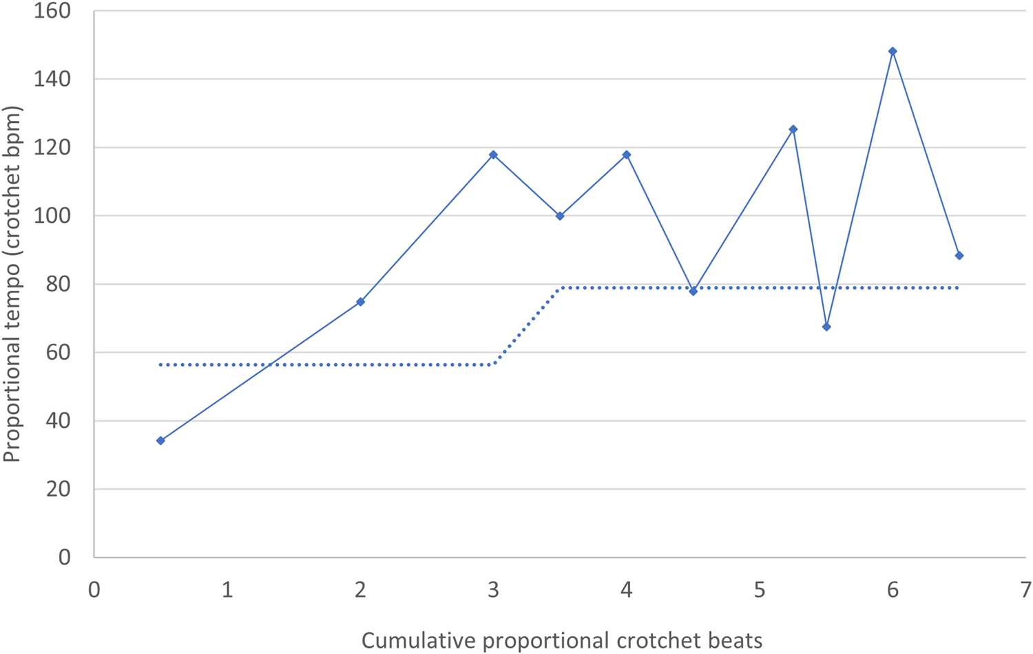 Figure 12 (Colour online) Corver b. 1 proportional versus hypothetical tempo.