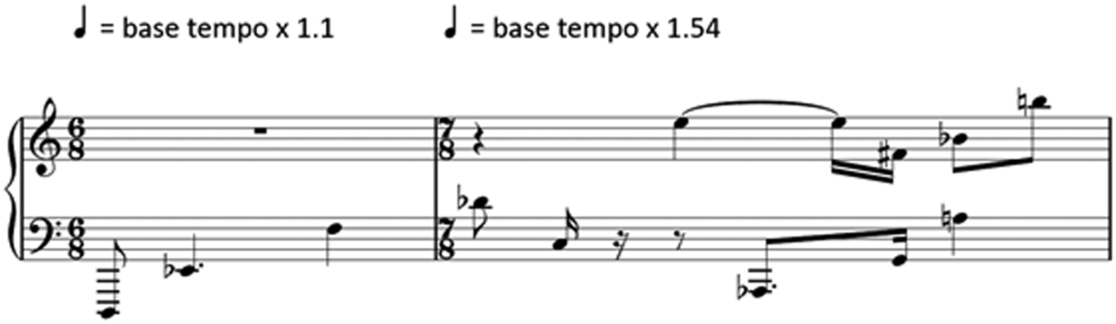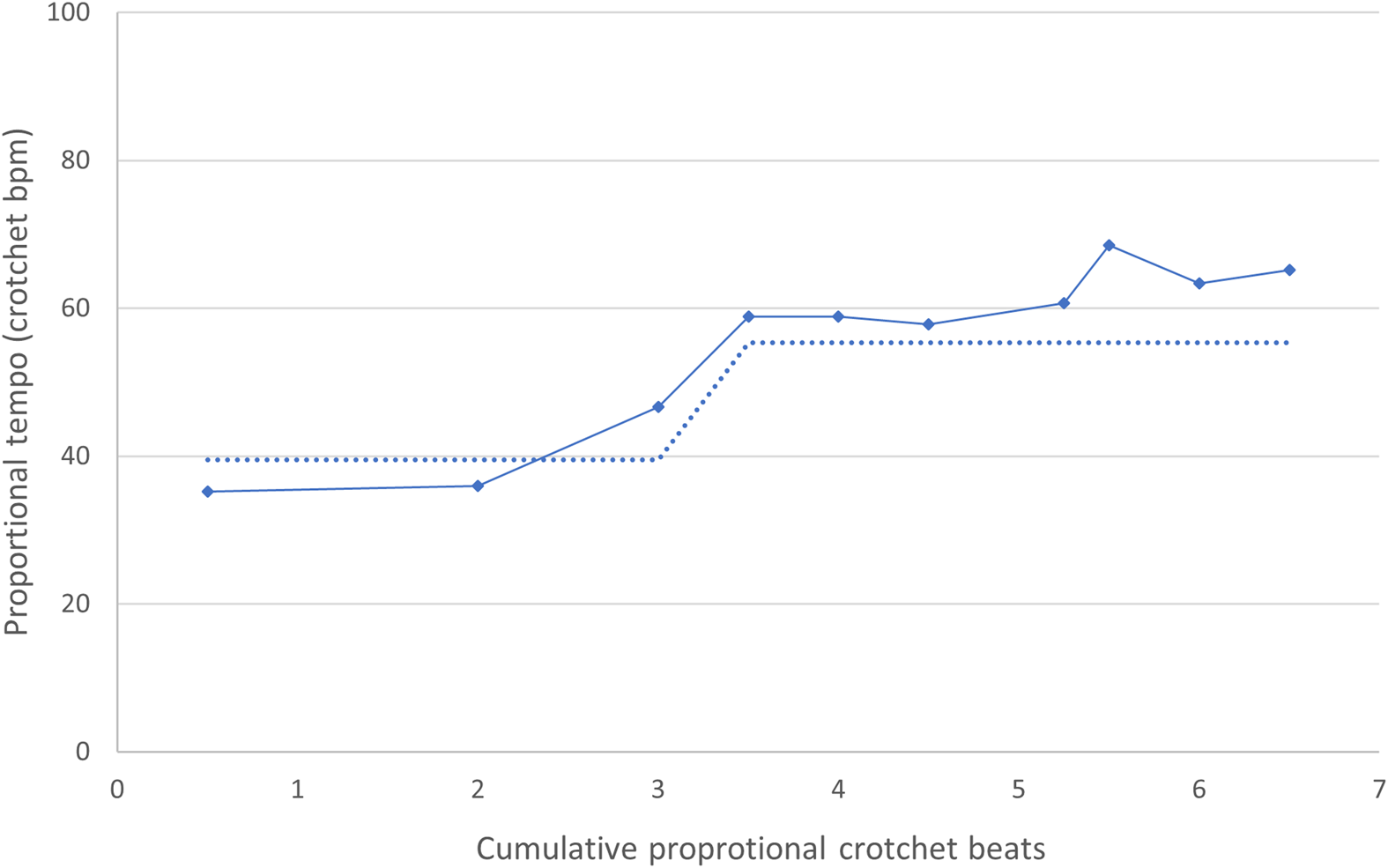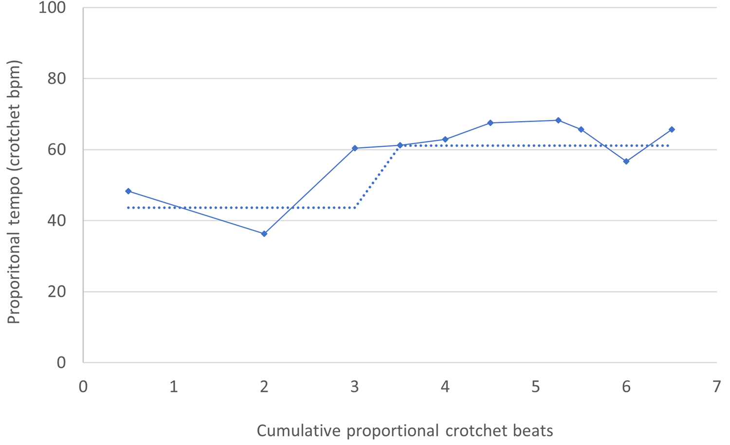 Figure 12 (Colour online) Corver b. 1 proportional versus hypothetical tempo.