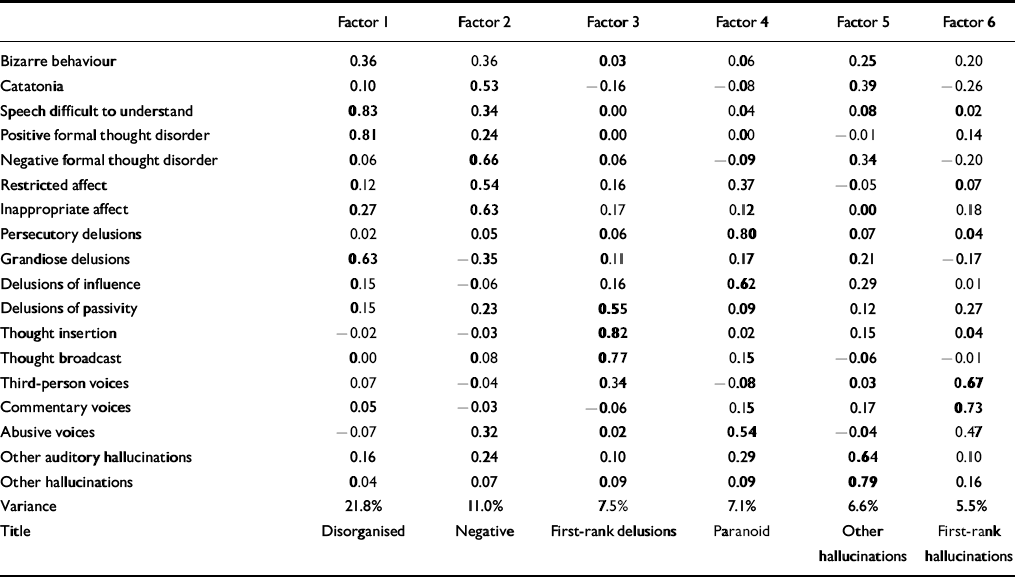 Table 1 First factor analysis: OPCRIT psychotic symptoms (loadings of > 0.50 in bold)