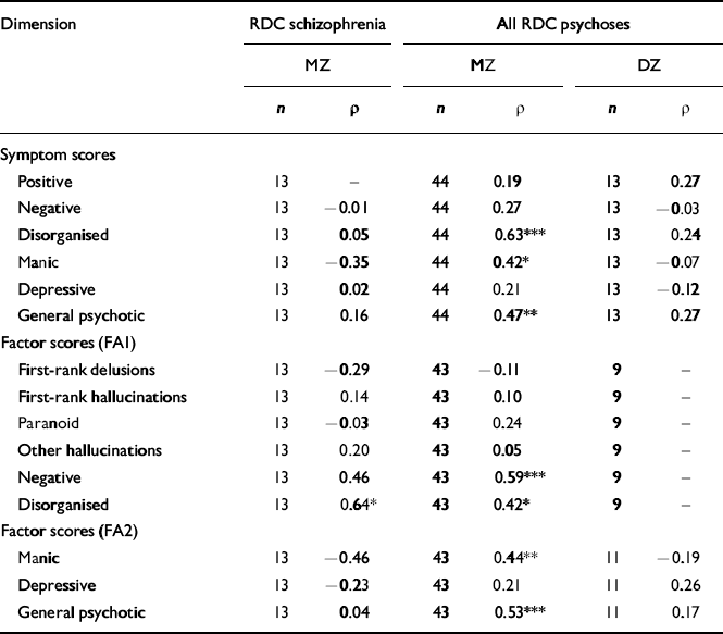 Table 3 Within-pair Spearman correlations of symptom dimensions in concordant twin pairs
