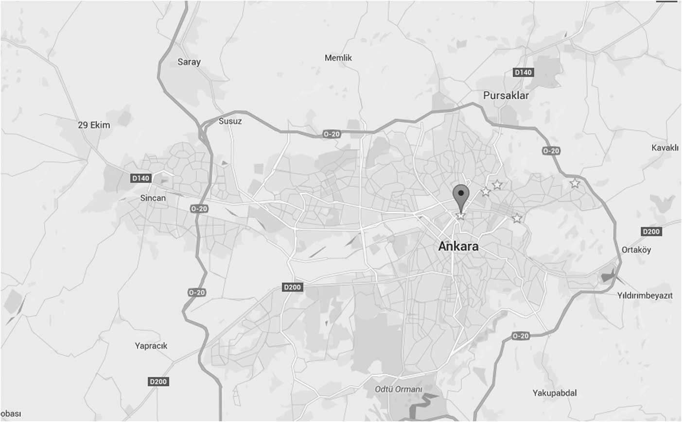 A total of 126 of 133 ambulance stations in Ankara responded to Syrian refugee calls from January 1, 2013 through June 1, 2015. Five stations responded to 42.0% of all Syrian refugee calls: Siteler (n=296); Hüseyin Gazi (n=236); Gülpınar (n=215); Hasköy (n=140); and Dışkapı (n=67). These stations were in close proximity to each other and were located in the Altındağ region of Ankara (Figure 2).