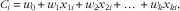 $$C_{i} \, {\equals}\,w_{0} {\plus}w_{1} x_{{1i}} {\plus}w_{2} x_{{2i}} {\plus} \ldots {\plus}w_{k} x_{{ki}} ,$$