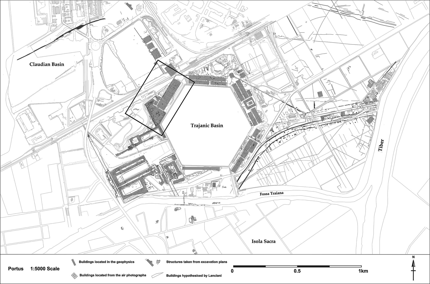 Portus, the maritime port of Imperial Rome, was established near the mouth of the River Tiber under Claudius (after AD 42), and was substantially enlarged under Trajan c. AD 112–117 (Keay et al. Reference Keay, Millett, Paroli and Strutt2005: 11–14, 298–309). For over 400 years, the port funnelled imports from across the Mediterranean to Rome, acting as a hub for the export of products from the Tiber valley, and for their redistribution around the Mediterranean. The physical extent of the port and its commercial activity during the periods of Ostrogothic and Byzantine control, however, is less well understood (Keay et al. Reference Keay, Millett, Paroli and Strutt2005: 13, 291–95).