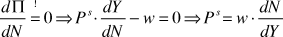 $${{d\Pi } \over {dN}}\mathop = \limits^! 0 \Rightarrow {P^s} \cdot {{dY} \over {dN}} - w = 0 \Rightarrow {P^s} = w \cdot {{dN} \over {dY}}$$