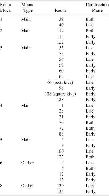 Notes: Samples are from both the main mound (room blocks 1–5) and the outliers (room blocks 6 and 8). Early Construction phase is AD 1289–1369; Late Construction phase is AD 1370–1395.