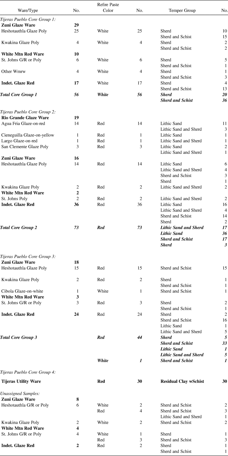 Table 2. Summary of Tijeras Pueblo (LA581) NAA Core Group Characteristics.