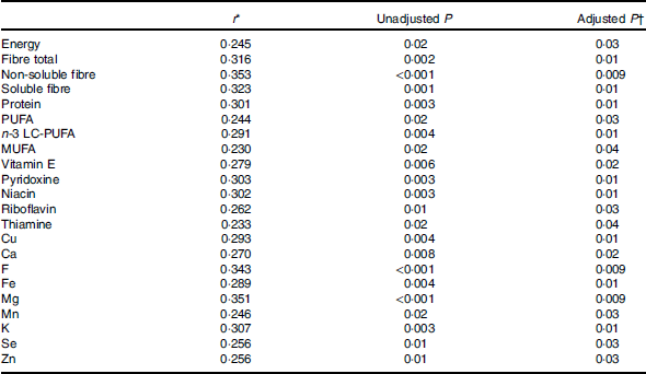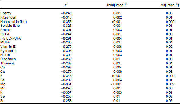 Table 2. Statistically significant correlations between dietary intakes of nutrients and glycoprotein acetylation (n 95)