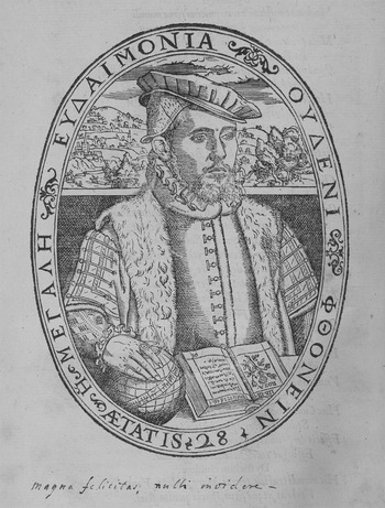 Figure 7.1 Portrait of William Cunningham from The Cosmographical Glasse (1559), sig. A3v.