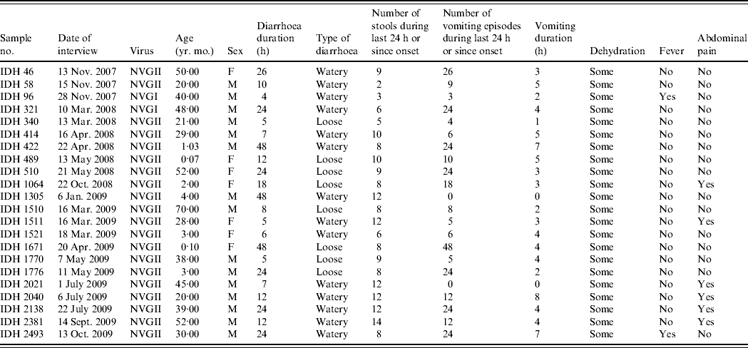 Table 2. The clinical details of patients showing sole norovirus infection in Kolkata, India during November 2007 to October 2009