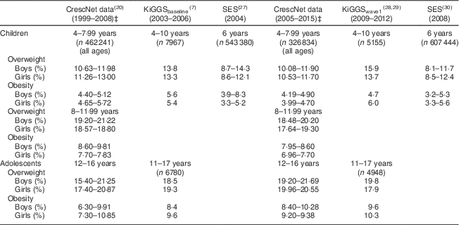 Table 2 Comparison of CrescNet data and two national surveys in children and adolescents in Germany