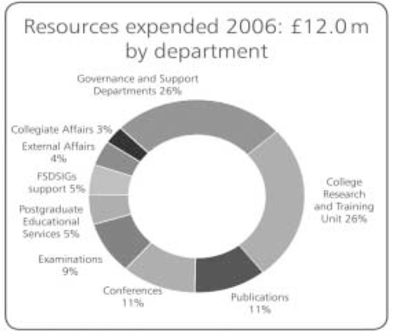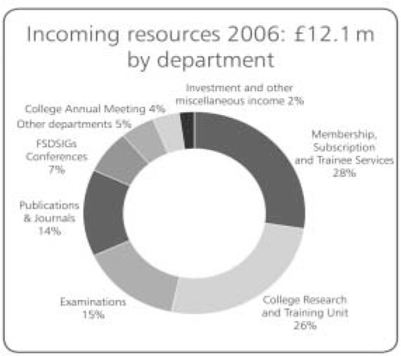 The current membership of the College is approximately 12 900, the highest ever. Of these 8800 are Members (MRCPsych) and 2435 Fellows (FRCPsych). Pre-Membership Psychiatric Trainees total just under 1000 and other grades, including Affiliates and International Associates make up the remaining number. The current contribution of membership fees to College income is somewhat less than 30%. This is consistent with historical trends.
