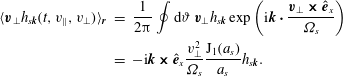 $h_{s}(t,\boldsymbol{R}_{s},v_{\Vert },v_{\bot })=\sum _{\boldsymbol{k}}h_{s\boldsymbol{k}}(t,v_{\Vert },v_{\bot })\exp (\text{i}\boldsymbol{k}\boldsymbol{\cdot }\boldsymbol{R}_{s})$