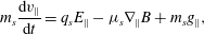 . In the presence of an electric field, an inhomogeneous magnetic field and a gravitational field, the parallel velocity