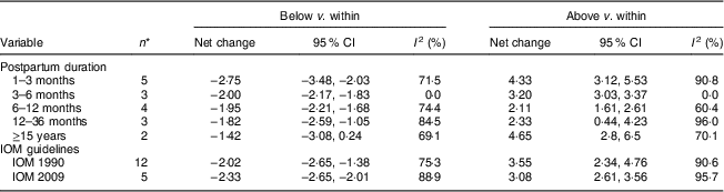 Table 3 Subgroup analyses of postpartum weight retention stratified by postpartum duration and US Institute of Medicine (IOM) guidelines