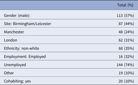 A total of 197 of 242 eligible participants consented to the trial (81%), fulfilling the following criteria: (i) ICD – 10 schizophrenia, schizoaffective (F20, 22, 23, 25, 28, 29), or mood disorders (F32) (WHO, 2009), under care of a clinical team; (ii) age ⩾16; (iii) history of command hallucinations of at least 6 months with recent (<9 months) history of harm to self, others or major social transgressions as a result of the commands; or harmful command hallucinations where the individual is distressed and appeasing the powerful voice and therefore at risk of full compliance. Exclusion criteria included: organic impairment or addictive disorder considered to be the primary diagnosis; insufficient command of the English language. The mean age of the sample was 37.4 (12.1; 16–64) and 113 (57%) male. Harmful compliance included harm to self (n = 119), others (42), kill self and/or other (53). All were in receipt of anti-psychotic medication.
