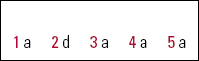 | 1 | a | 2 | d | 3 | a | 4 | a | 5 | a |