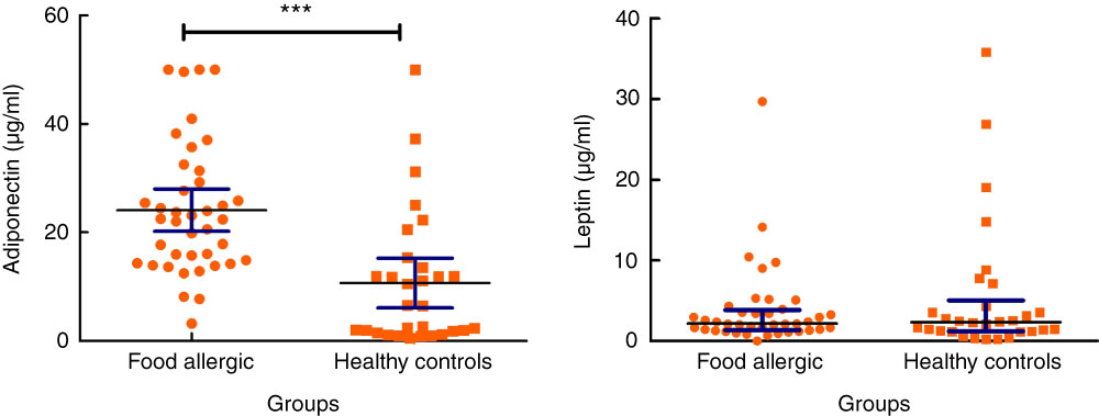 The aim of this study was therefore to investigate whether adipokines as markers of obesity and fat tissue are associated with food allergy. Despite the existence of other adipokines, we decided to evaluate the role of adiponectin and leptin as the most fundamental ones in this pilot study.