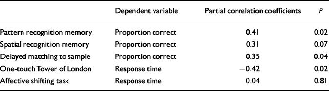 Table 1 Results of partial correlation analysis on tests in which ANOVAs were significant