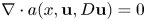 $\nabla \cdot a(x,{\bf u},D{\bf u})=0$, in which, again, the coefficient