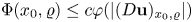 \begin{equation*} \Phi(x_0,\bar{\varrho})\leq c_\varphi \mathop {\int\hskip -1,05em -\,} \limits_{B_{\bar{\varrho}}(x_0)}|{\bf V}_{|(D{\bf u})_{x_0,\bar{\varrho}}|}(D{\bf u}-(D{\bf u})_{x_0,\bar{\varrho}})|^{2}\,\mathrm{d}x \end{equation*}