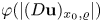 \begin{equation*} \Phi(x_0,\varrho):=\mathop {\int\hskip -1,05em -\,} \limits_{B_\varrho(x_0)}\varphi_{|({D{\bf u}})_{x_0,\varrho}|}(|D{\bf u}-({D{\bf u}})_{x_0,\varrho}|)\,\mathrm{d}x \end{equation*}(see (3.14)). In the non-degenerate case, when