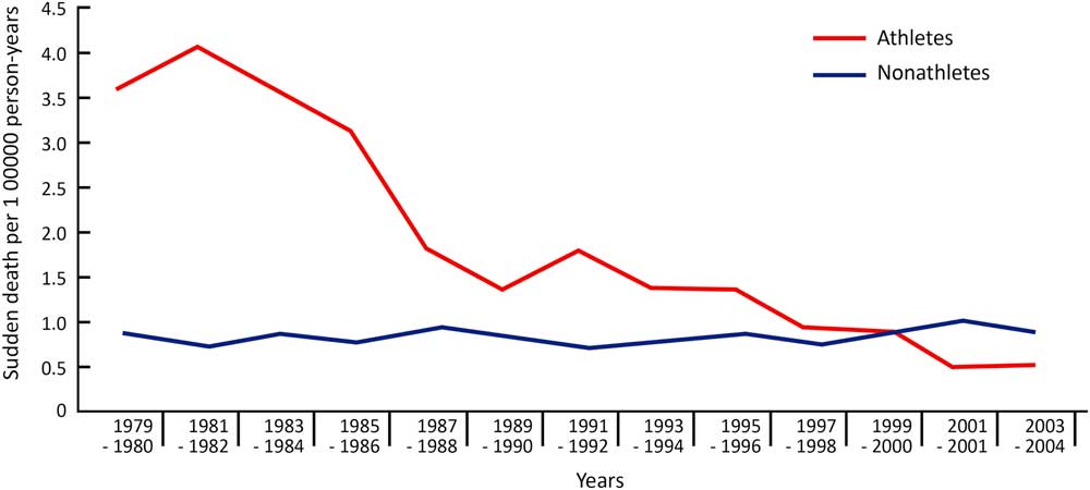 Table 1 Causes of sudden cardiac death in screened athletes and unscreened non-athletes in veneto region of Italy from 1979 to 1996 (modified Corrado et alReference Corrado, Pelliccia and Bjornstad 7 ).