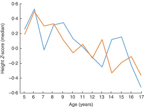Fig. 1 (colour online) Height Z-score according to age and gender (